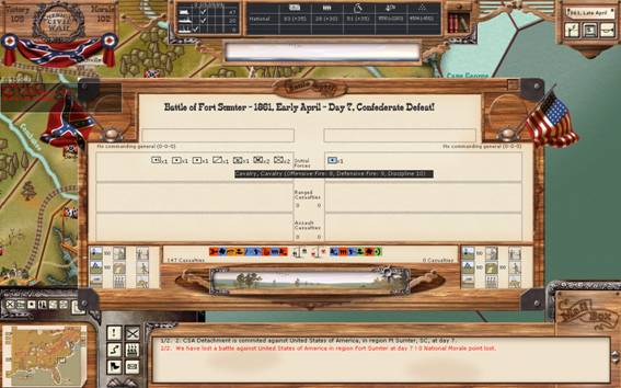 The following turn my assault on Sumter was not succesfull - I lost 2000 and the Union lost 750 men - no Union units destroyed.