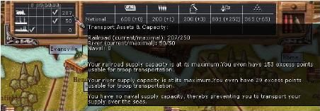 Jim-NC wrote:If you are the CSA, you do not get any sea transportation. Brigs allow you to run the blockade (bringing money/WS - see Chertio's post above). Transports allow you to move units and/or carry supply with them(the transports), but don't give you any sea transportation in your box in the upper left corner of the screen.