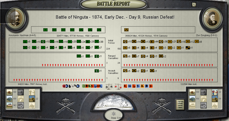 Japan has received a telegraphed copy of the tentative peace agreement between France and Germany. The Emperor has given his permission to the government to prepare again for hostilities, if this draft is ever implemented as it is. Although Japan is not interested in worldwide ascent, it feels that such an omnipotent Germany will be a peril for all other nations' spheres of influence. World trade will suffer as most transactions will have to pass from Berlin and its tariffs.