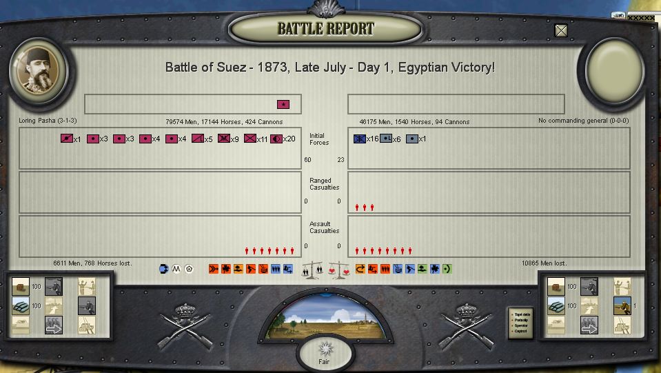 First win for Egypte! But with the many army of Prussia in South of Egypt is also the last. But Kingdom of Egypt not surrender in only bad situation.