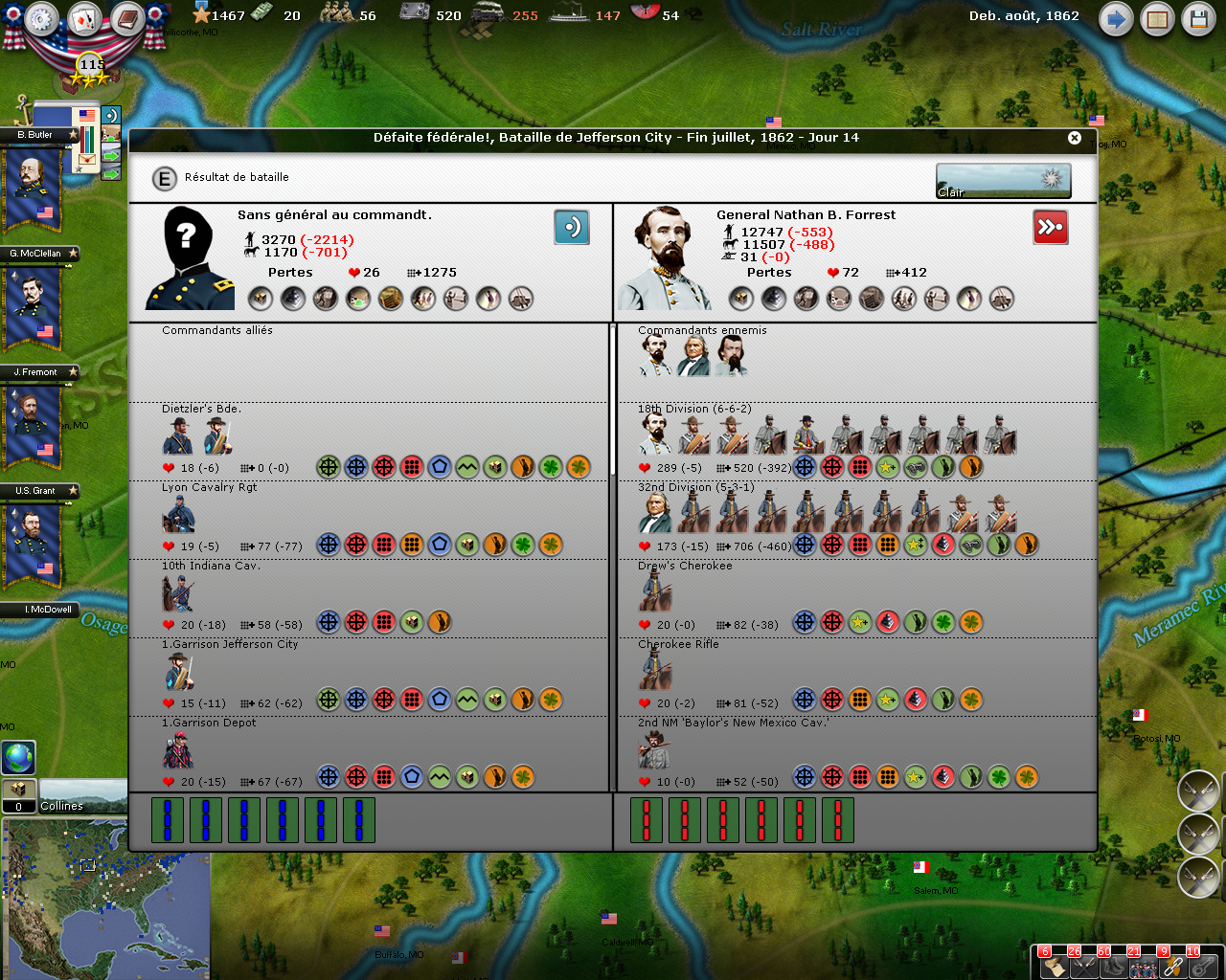 In Missouri, Havi tried to stop the Union’s advance by launching Forrest (and most of the cavalry and Indians force of the Confederation) against the Union’s rear.