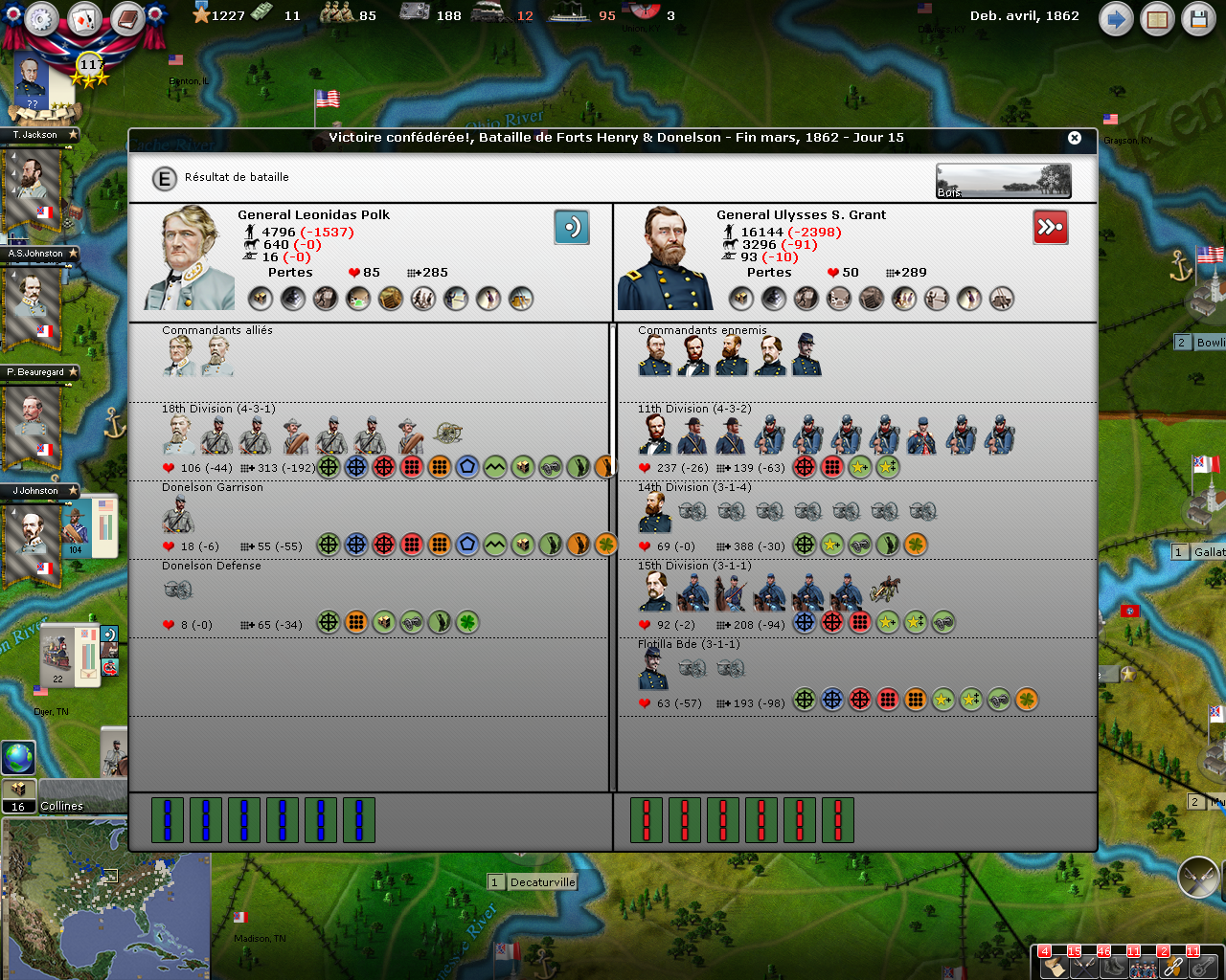 During all the game, Kentucky remained neutral, severely impeding movements of both sides. Grant’s army took Island 10 but failed at the strongly guarded Ft Henry & Donelson.