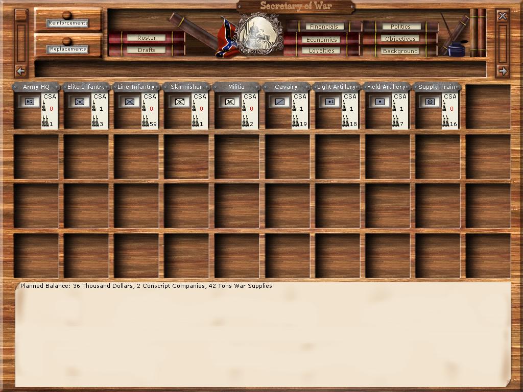 Here's the rub, I only have 100 CS points to spend. So I must spend them wisely on replacements. So I have decided to purchase 2 inf replacements, 1 cav replacement, and 1 Lt. Art replacement.