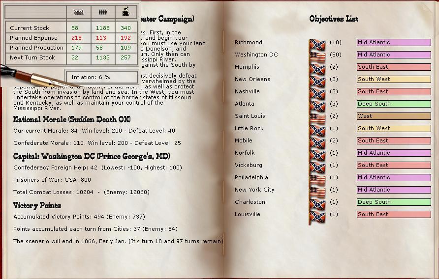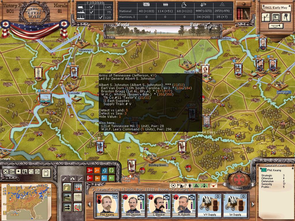 W.Barksdale wrote:I can't really take any counter-action as I'm lacking Generals and that extra HQ unitThere are six divisions waiting in Cinncinnatti (sic) for commanders