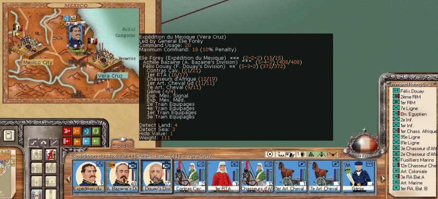 French forces in México show well that the 3rd empire was not quite the same as the 1st, and Canadian forces had a rough time, in my game, vs USA AI.