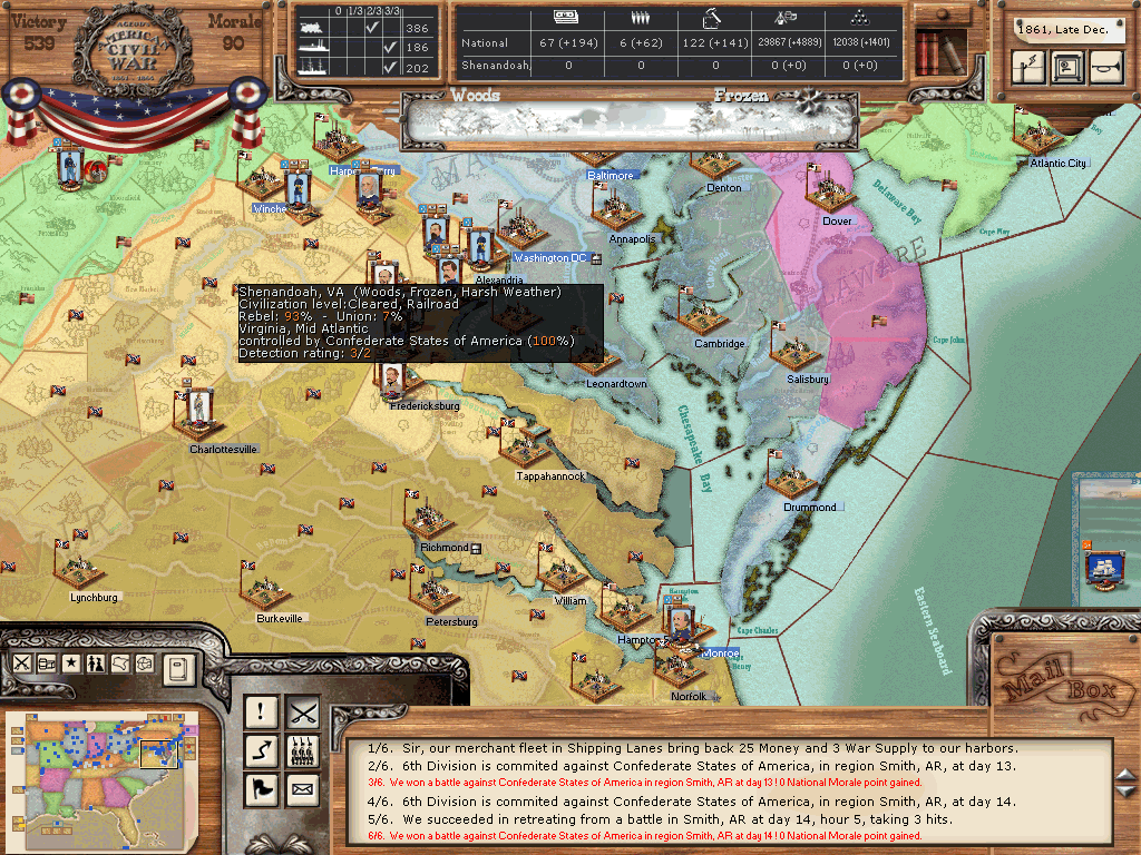 Well, so much for that, it's christmas now and Santa has brought us a whole set of new political, financial and draft options to choose from. In one of his last turn mails kyle remarked that union forces were already multiplying like locusts, well, the locusts are in for a new reproduction spree... :niark: