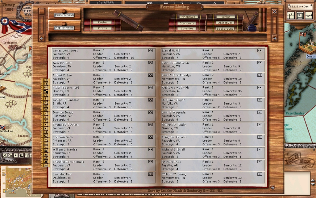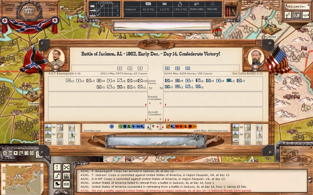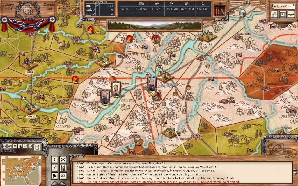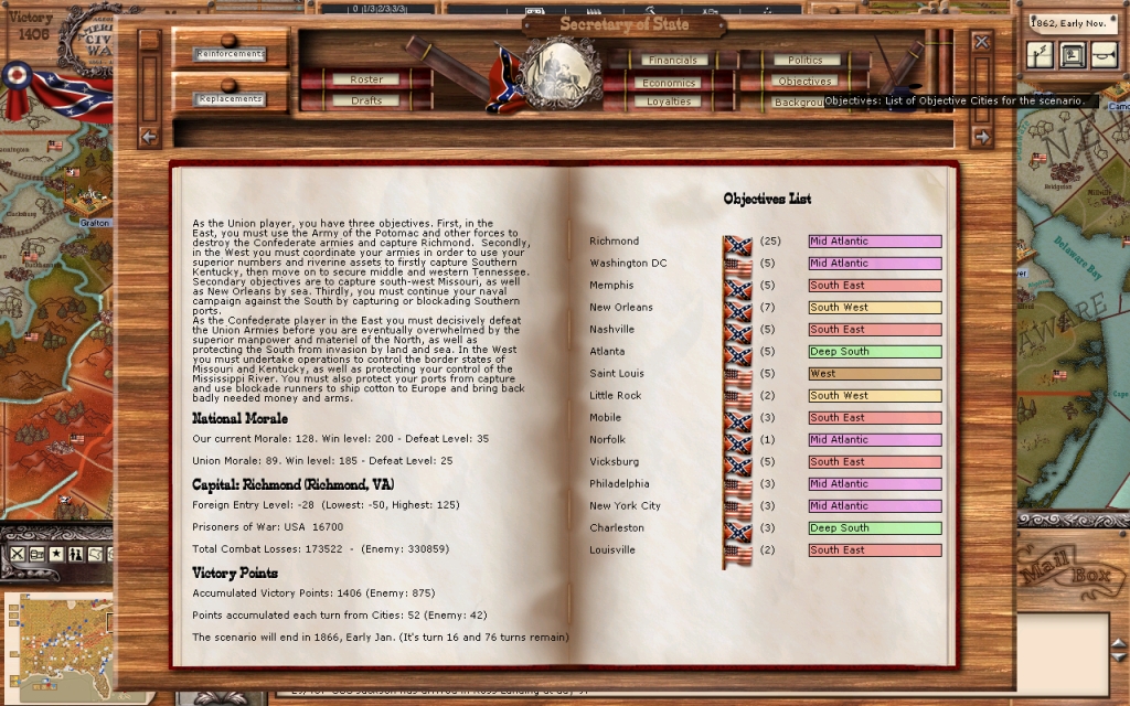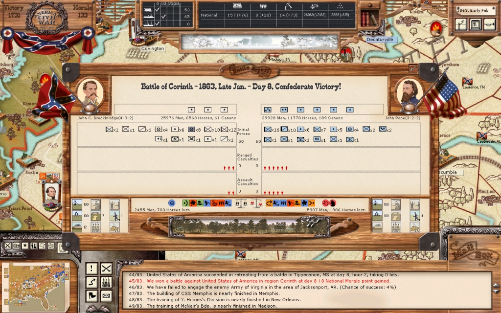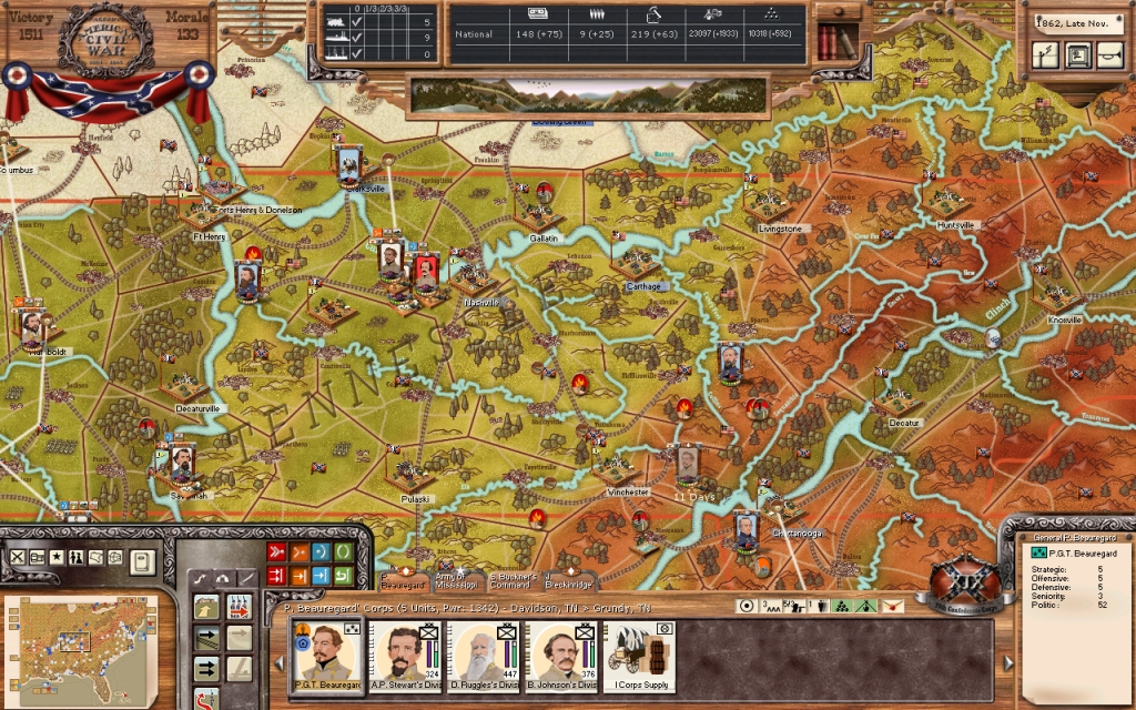 In that time, I have taken Nashville, Washington DC, and Baltimore while holding Memphis, New Orleans, Savannah, Wilmington, Richmond, Mobile, Atlanta, anc Charleston. I would call it a very successful run.