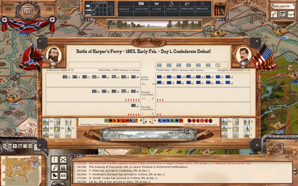 I think I will try to do another AAR of this style in a few weeks, and I may even try to do it from the Yankee point of view.