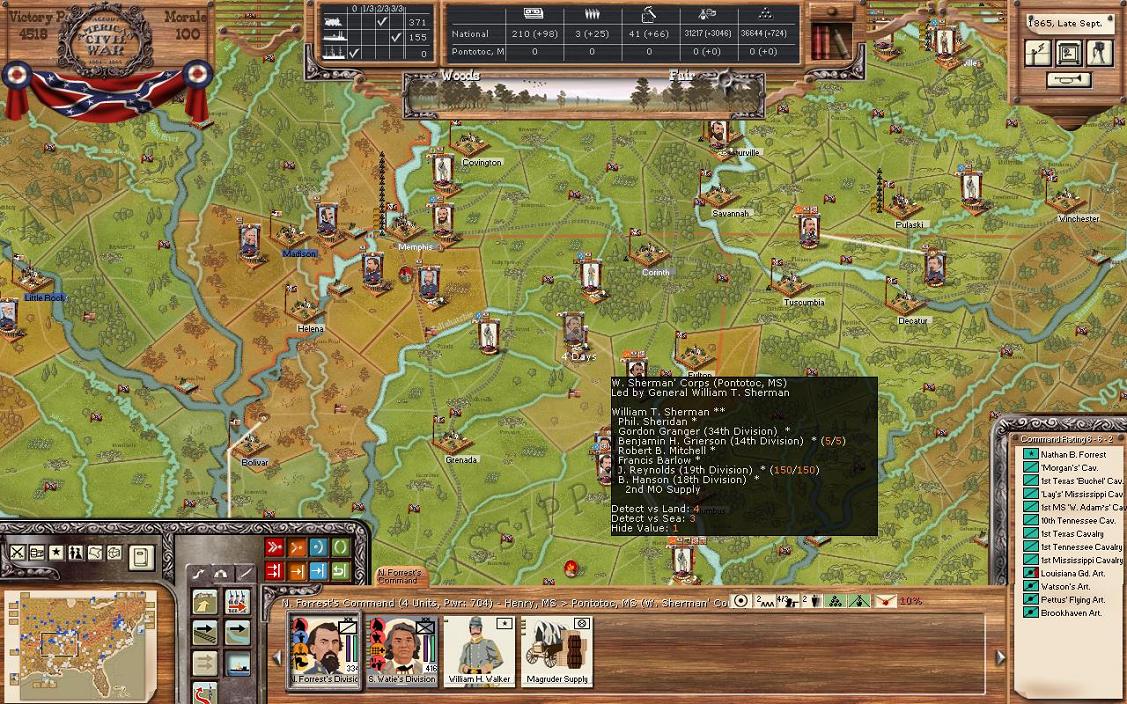 Hampton's division clears out most of the Union forces in eastern TN. Forest finally captures some of Sherman's corps. The big move by the Union though is that they have moved 4 divisions directly south of Memphis. More details coming later.