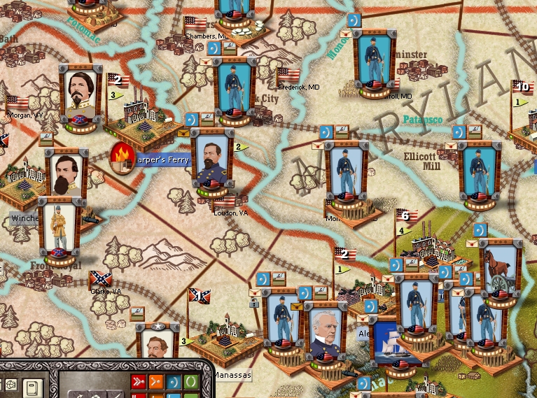 I've moved McClellan to Frederick City to join Dix. I've also placed all the units on a higher level of ROE in this region.