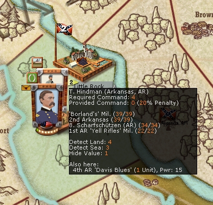 I have a division dug in in each of the counties here. HF has a larger division. Each division is listed as a corps (with one division). And, aside from that there is a separate militia dug in in each of the counties (so if the division moves, the militia will maintain the level of entrenchment).