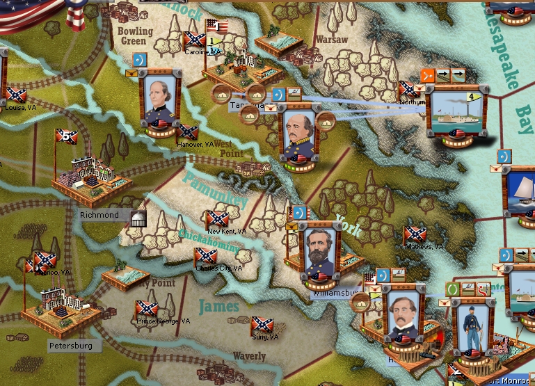 Also, I want to see what happened to the Northern Navy. The navy was ordered all-in to Hampton Roads. Where are they? Delayed orders shouldn't have hit so many units.