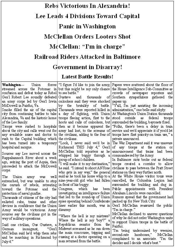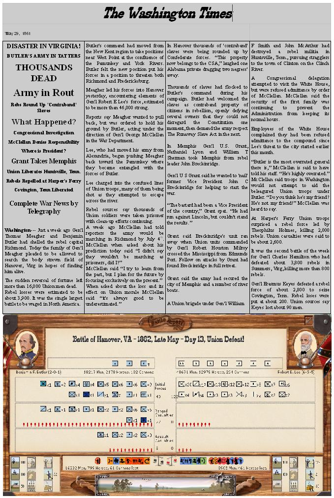 That's true about the attack on Manassas. I had hoped the troops in Alexandria would have been involved in the attack on Washington though. But good point. I hadn't considered the MTSG element there.