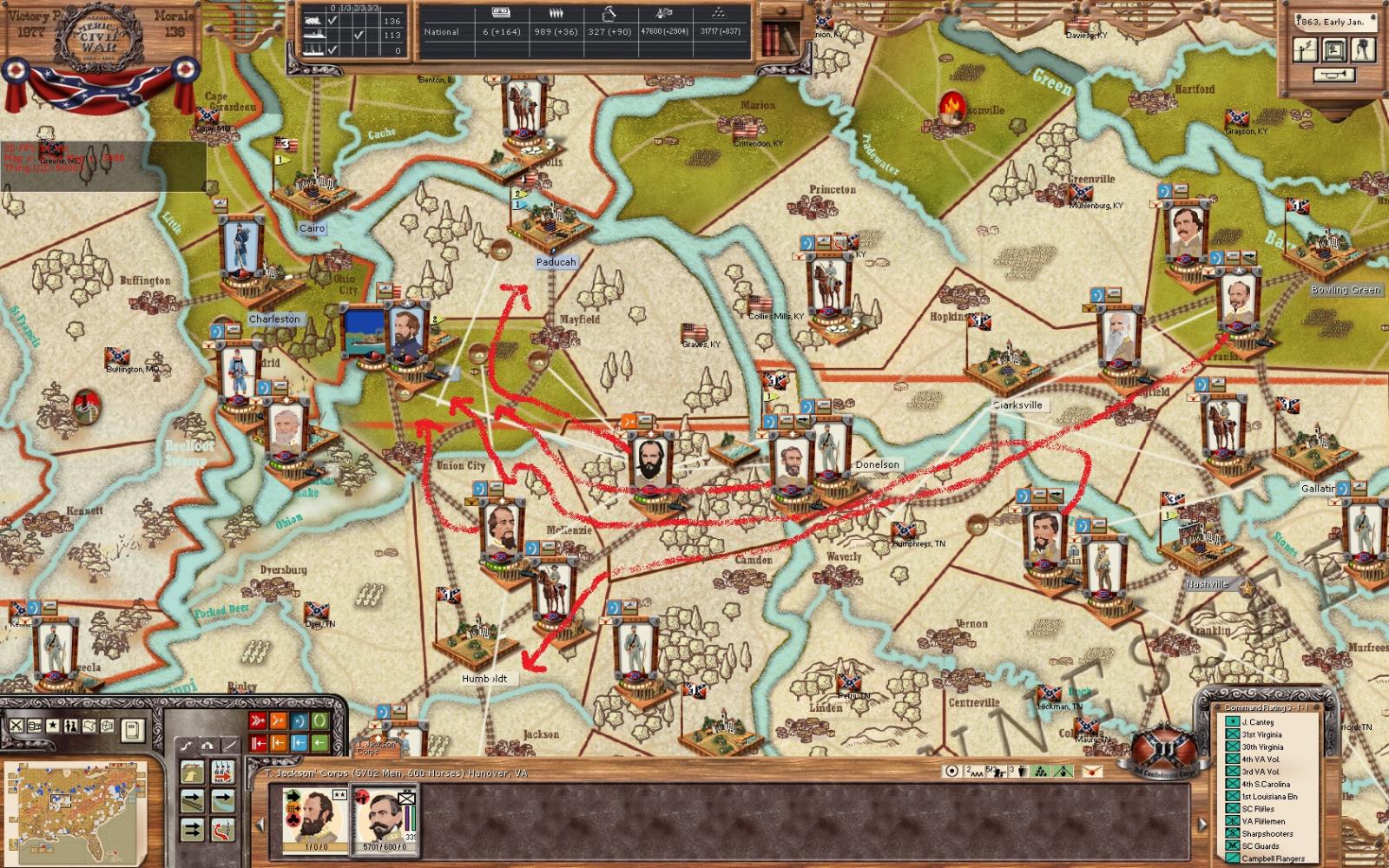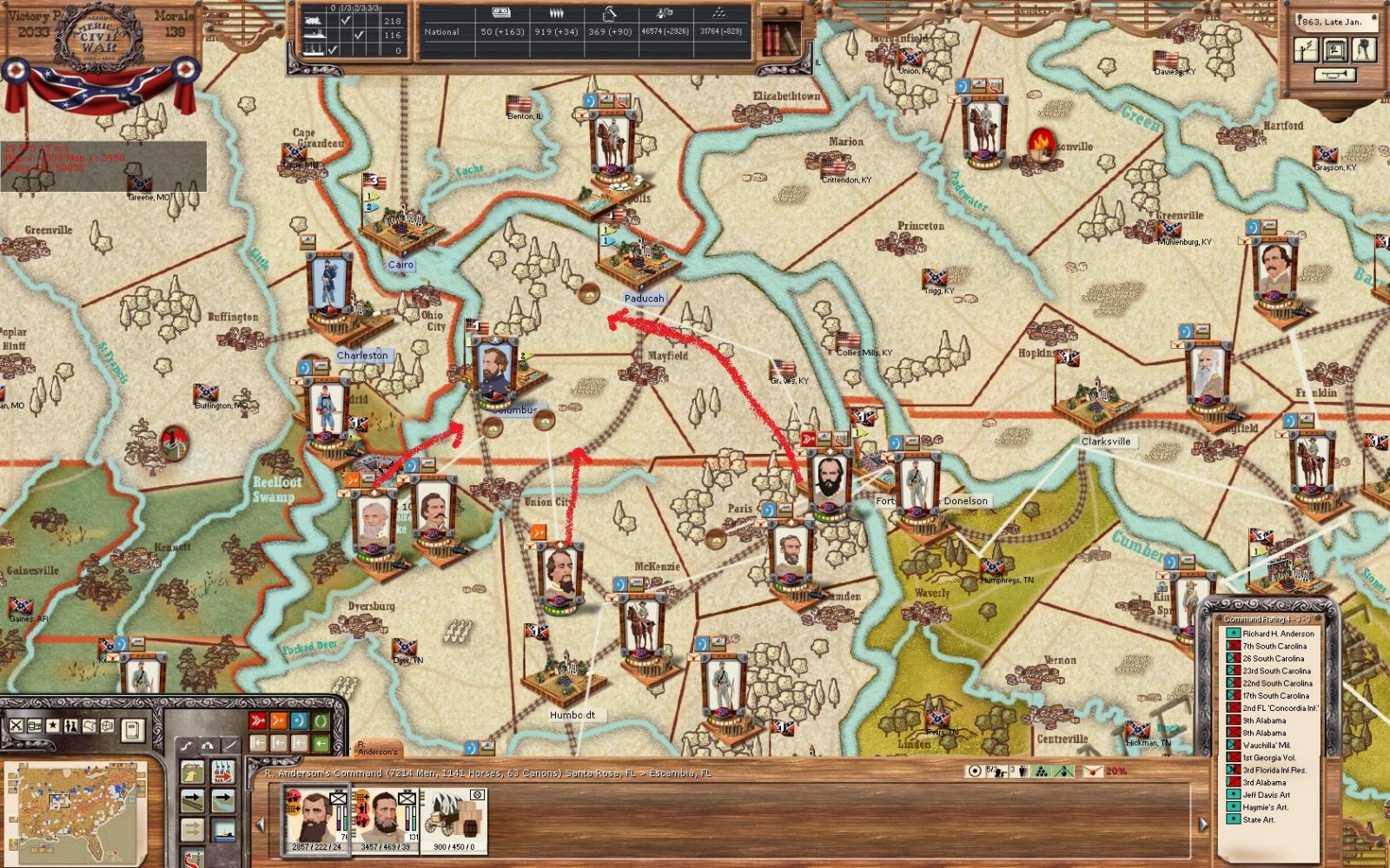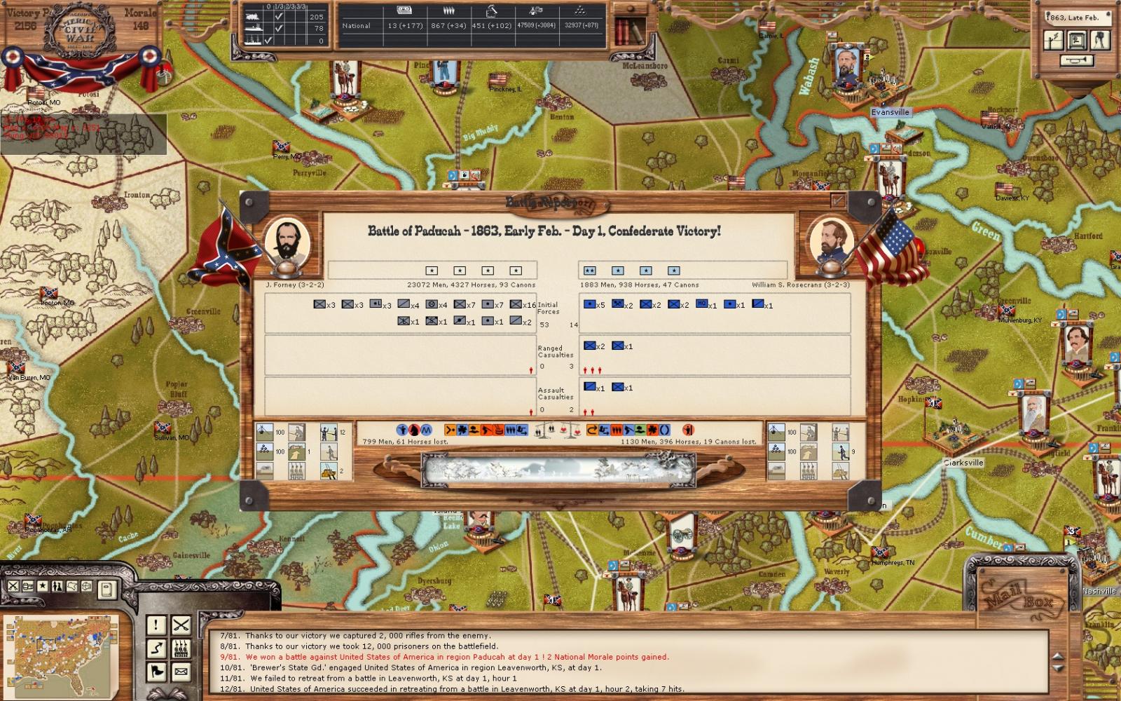 veji1 wrote:wow. I just read the reports at the bottom of the screenshots and it looks like you have made 38 000 prisonners in western Kentucky in this campaign, with 36 000 of those in Paducah. This is a major disaster for your opponent, you just basically did to him the equivalent of capturing Fort Donelson and Vicksburg at the same time !!