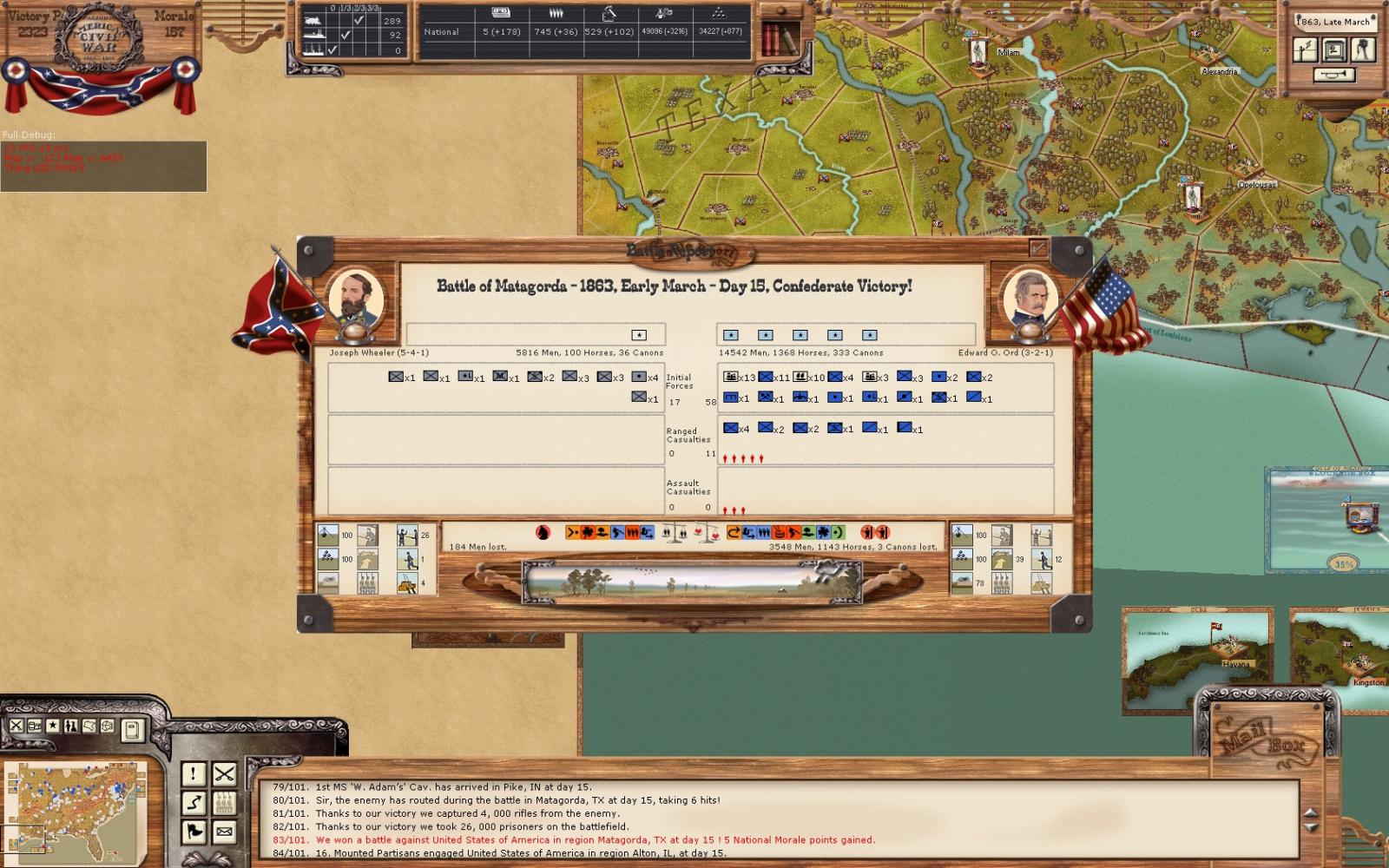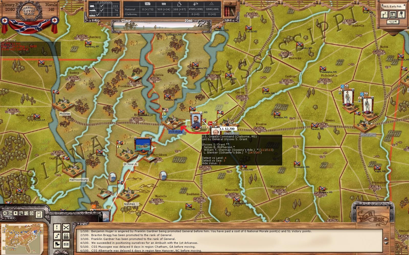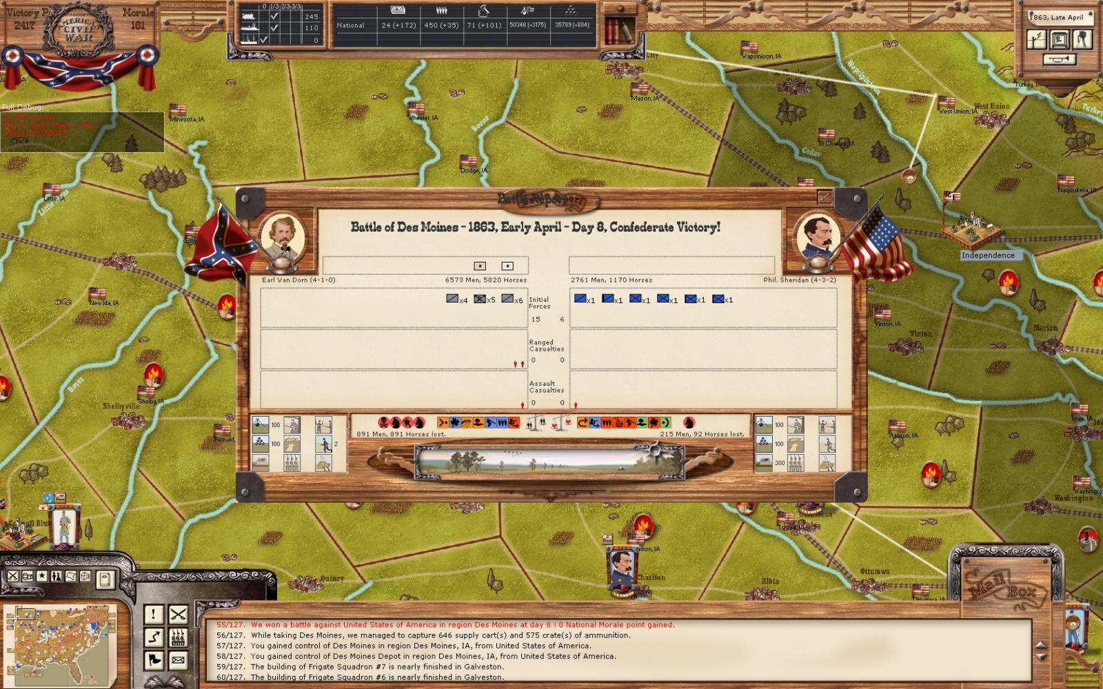 veji1 wrote:wow. I just read the reports at the bottom of the screenshots and it looks like you have made 38 000 prisonners in western Kentucky in this campaign, with 36 000 of those in Paducah. This is a major disaster for your opponent, you just basically did to him the equivalent of capturing Fort Donelson and Vicksburg at the same time !!