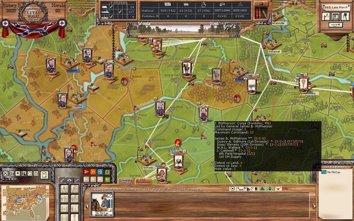 Industrialization - Virginia low, Mississippi high. TN now produces 559 GS per turn, which for now, is enough to supply my Army of TN.