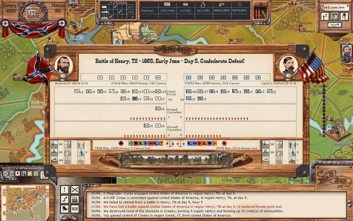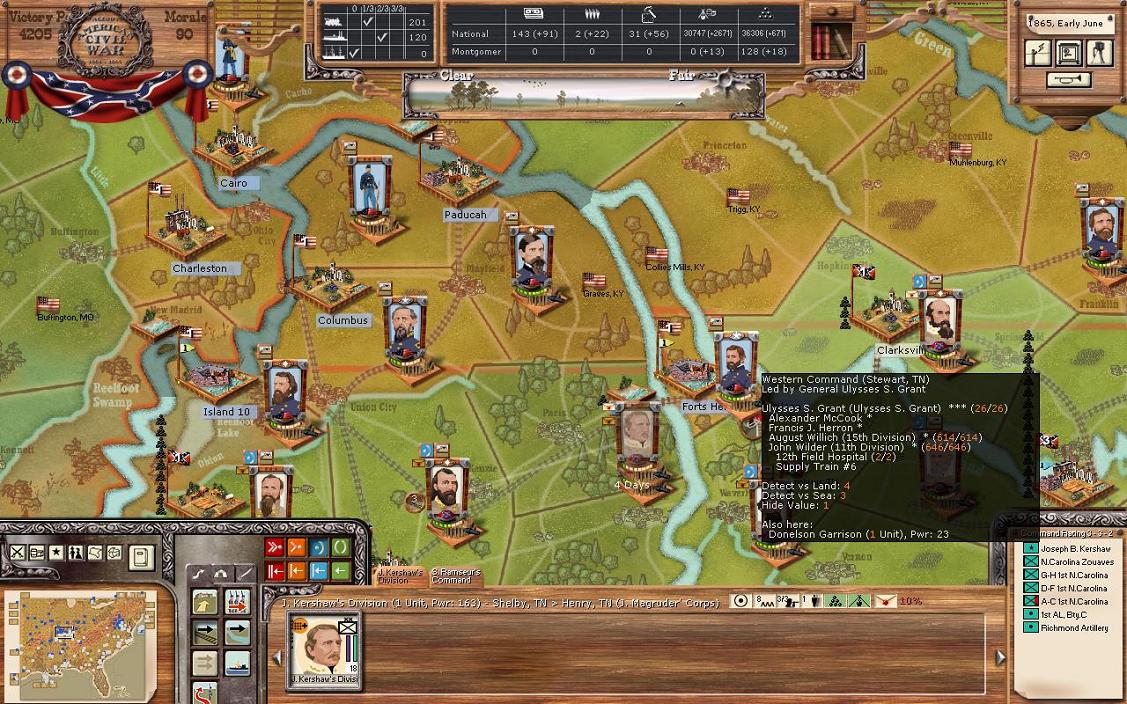 The Union wins a big battle in Henry TN, but the CSA doesn’t retreat and the Union takes more casualties in the battle. Looks like a move on NO, and the Union experiences supply problems. Lots happening!