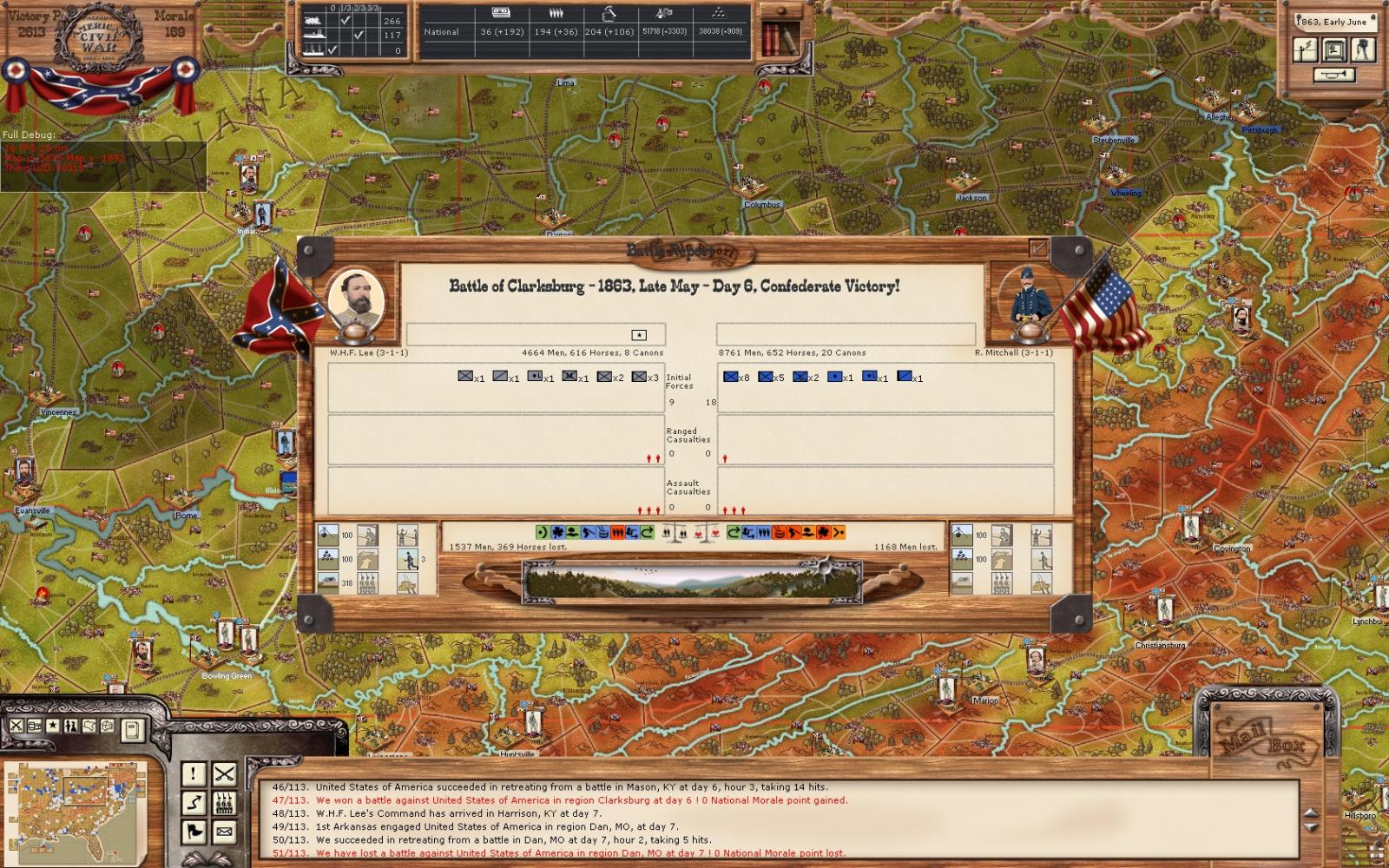 Losses were heavier on my side, but I held my ground. W.H.F. Lee was set on defend at all cost.