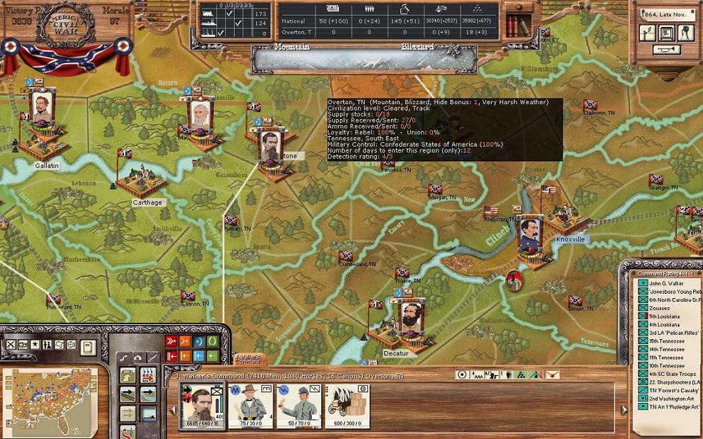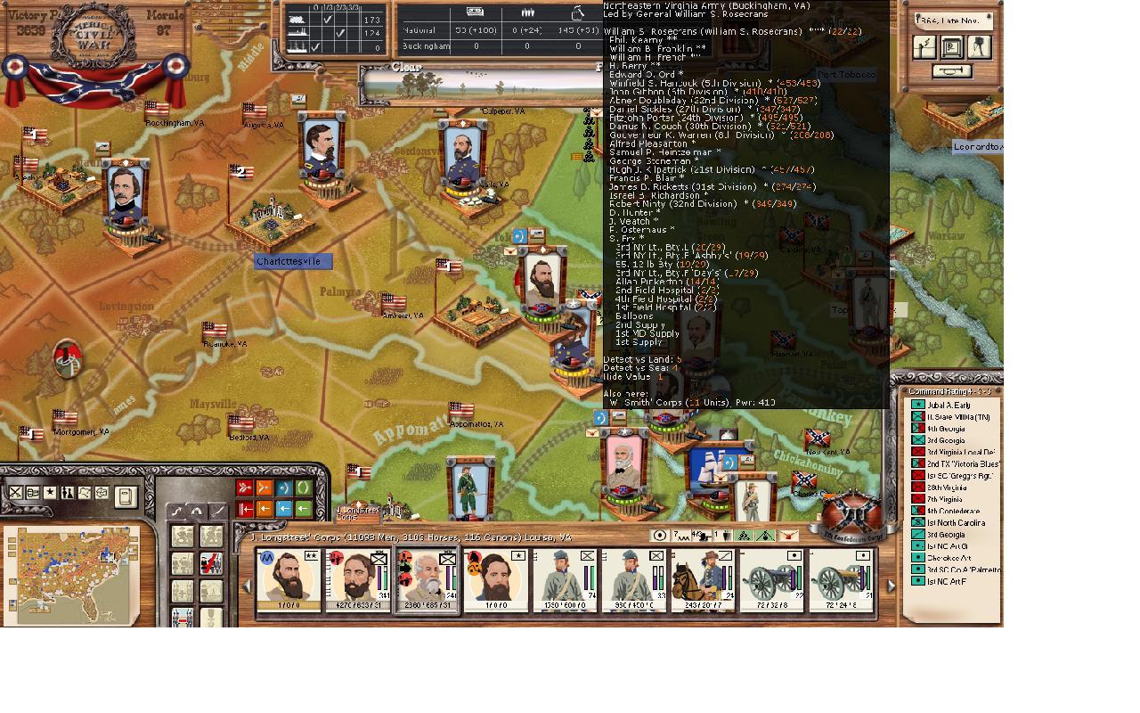 Although you might be surprised that Virginia has a much smaller army than TN, this is because this army needs lots of replacements to come back to full strength. At full strength, I think the size will be closer to 90,000.