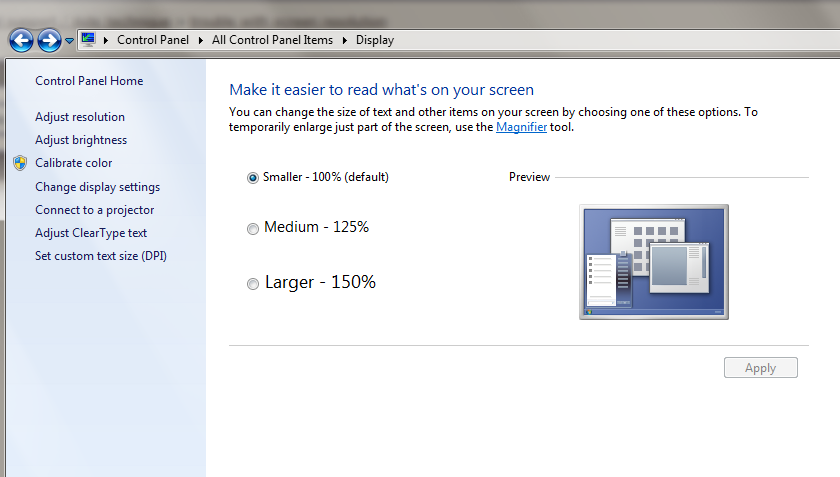 Maybe not the resolution of the screen, but the resolution of what is written on: you had change the DPI (dots per inch, what shows Nikel screen),