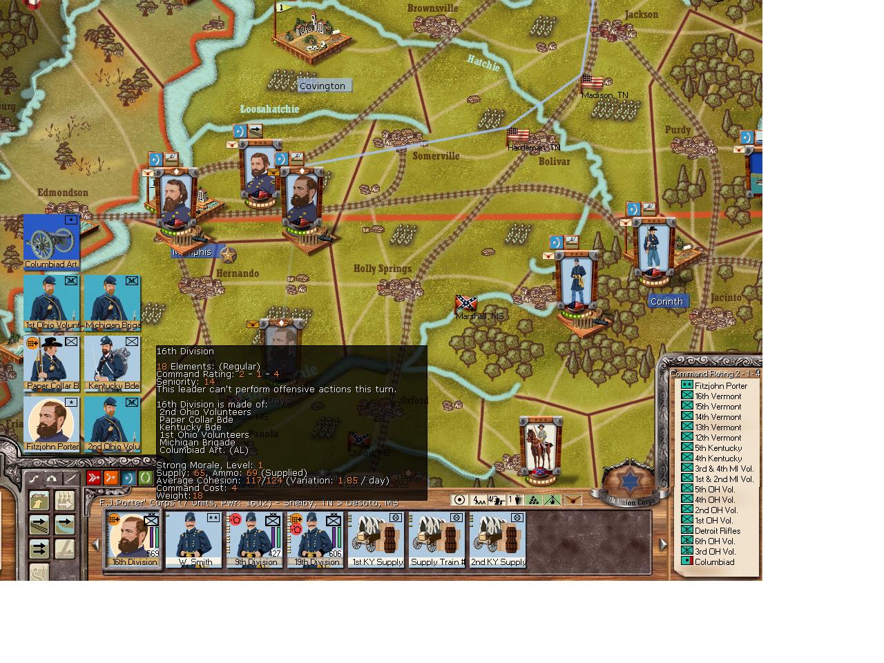 just playing as union and took memphis, i organized a corps in which FJ Porter had a division, and there were 2 other divisions and a 2 star general. when i made this union detachment a corps, for some reason it states that it is FJ Porters' corps(he is only 1 star), completely bypassing the only 2 star general i have in the stack, just thought it was strange.