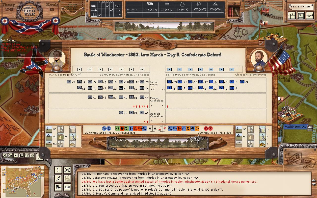 NEWS FLASH>>>>Yanks retreat from Siege of Winchester!!(low cohesion)