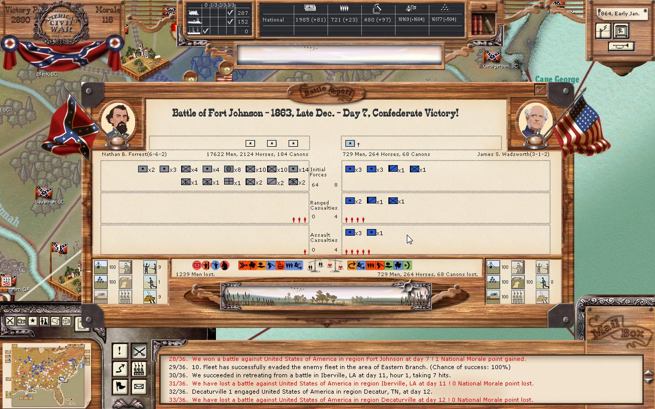 SkyWestNM wrote:Forrest also has some of the best artillery the CSA has, the Columbiad, at Corps level. And Corps level artillery fires at the biggest targets first.