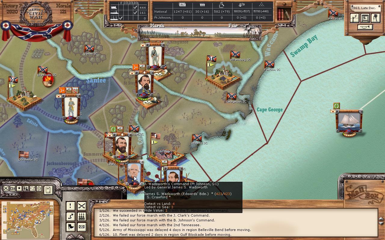 Anticipating a rapidly expanding beachhead, General Holmes has come up from Savannah to defend the Combahee River crossings. Facing him is an undetermined Union force lead by Federal General Clarke. Let's take a deeper look.