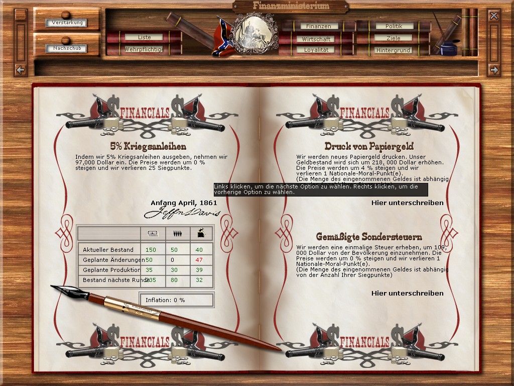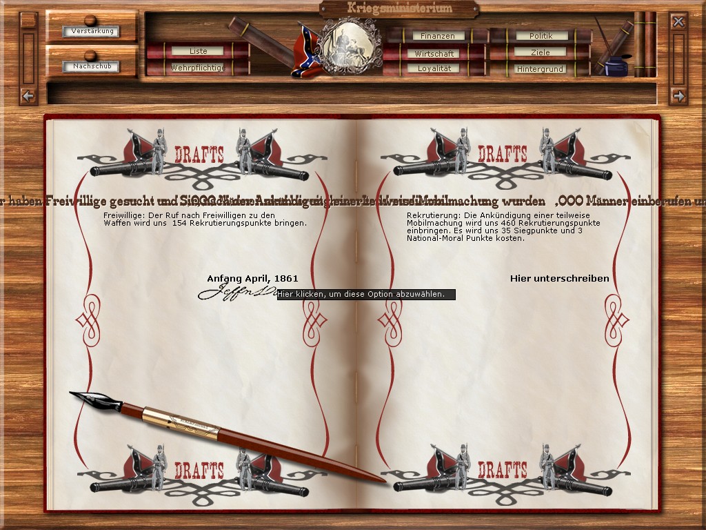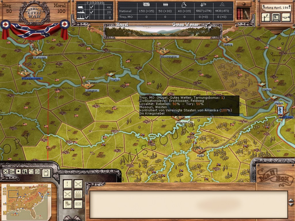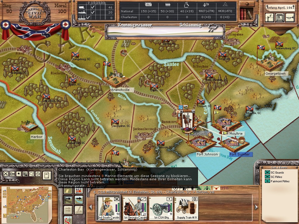 In this thread Mr. James Longstreet (my enemy) challenges the south and he says that the North don`t accept the Conferderacy :w00t: This leads us to PBEM AAR where I will give my impressions as good as I can from the southern side, played is version 1.11e in german, I will try to write my complete AAR in english and always with pictures :w00t: