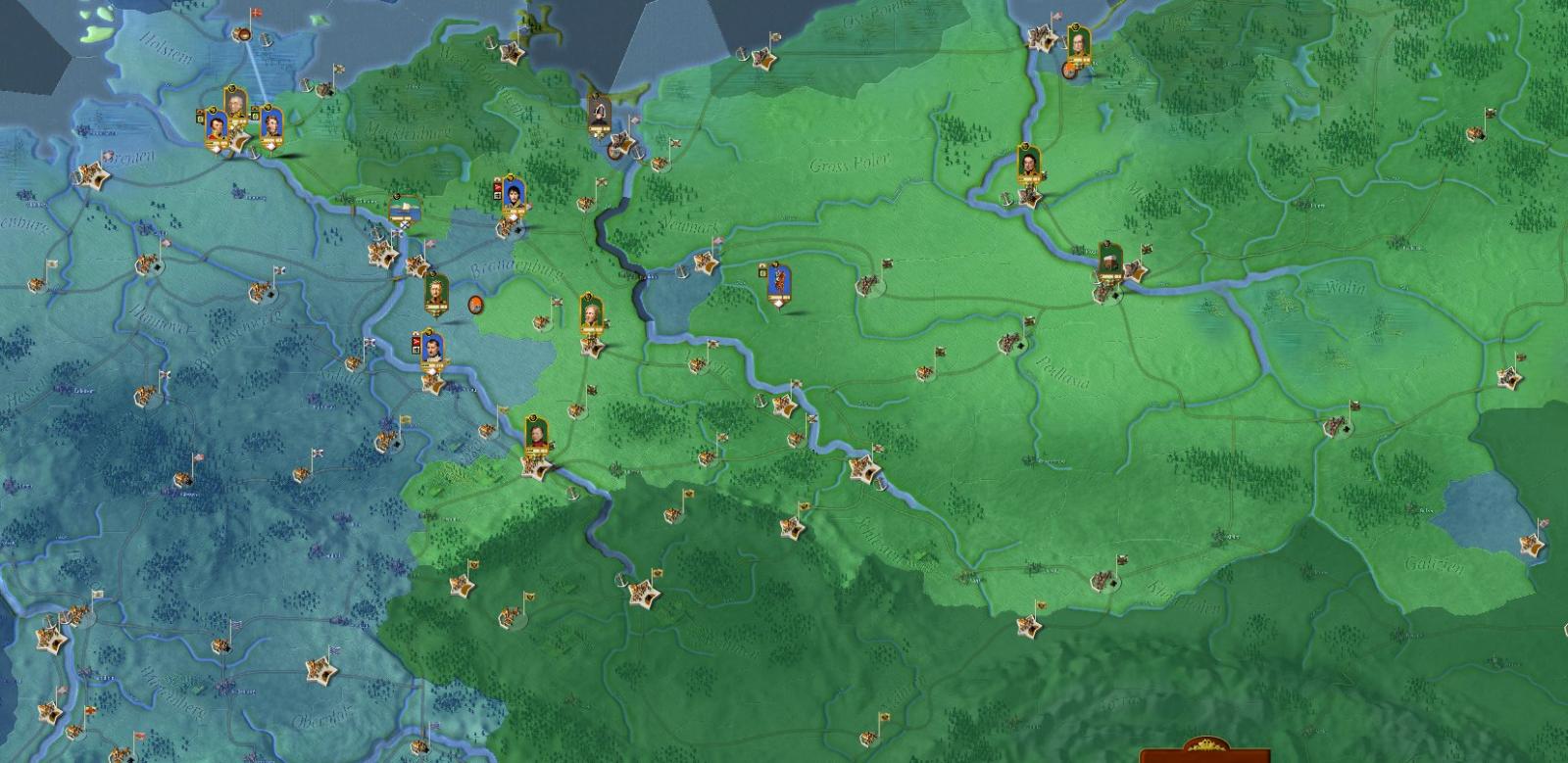 En el mapa estratégico así es como quedan las cosas, Consigo Leipzig, Torgau y Berlín, pero ha sido imposible capturar Hamburgo, por no hablar de Dresde
