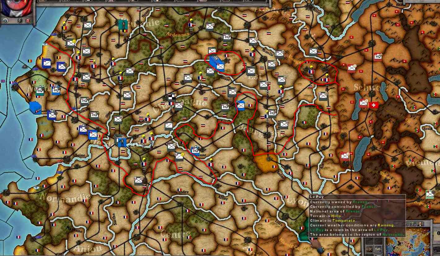 Note: During this period of time various French HQ's and perhaps some infantry units appeared in the province. This anomaly has been corrected in a patch, but it did not take hold in this saved game.