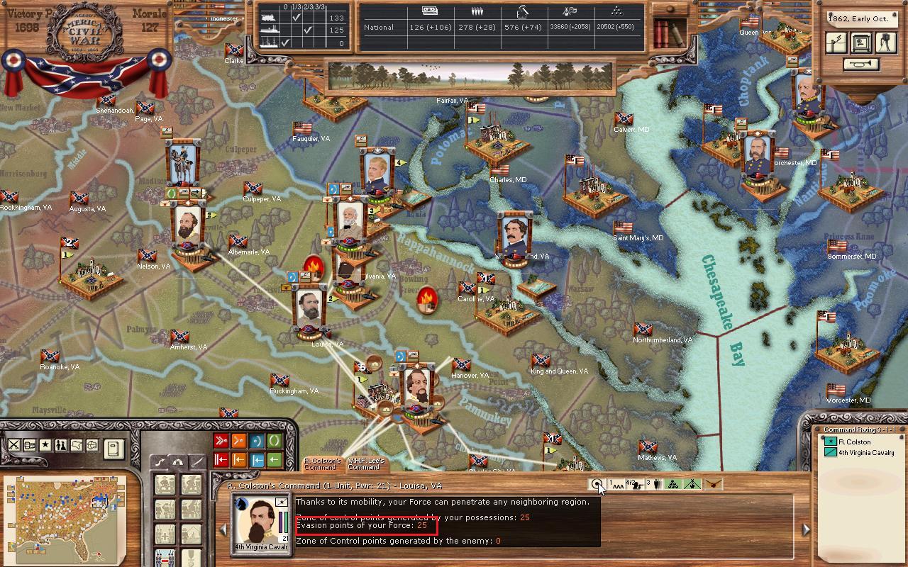 Look at the 4th Va Cav’s evasion rating. See the difference. Originally 12, now 25. Now they'll come back lots more often and you won't have 10 generals mopin around in Richmond anymore with nothin to do.