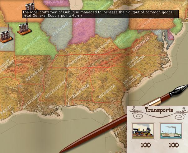 Investments continue to flow into Missouri, Iowa, and Kansas. I've also ordered up some reinforcements which will be used for defending the capital and to reinforce Ft. Monroe, as well as to support operations for control of Missouri.
