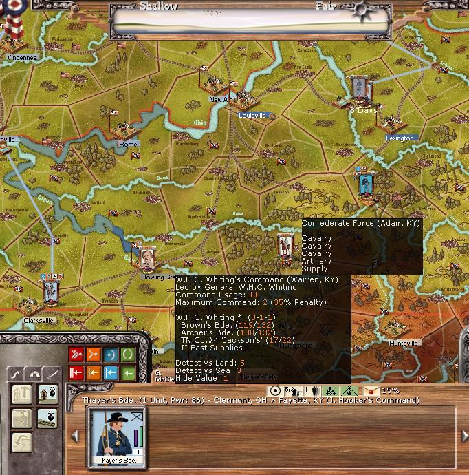 Hooker continues to hold Lexington with 3 bde's. The rebels have quite a bit of strength up in northern KY..I like this :wacko: