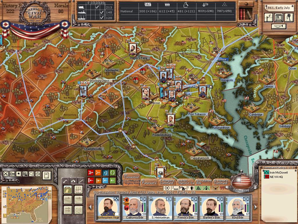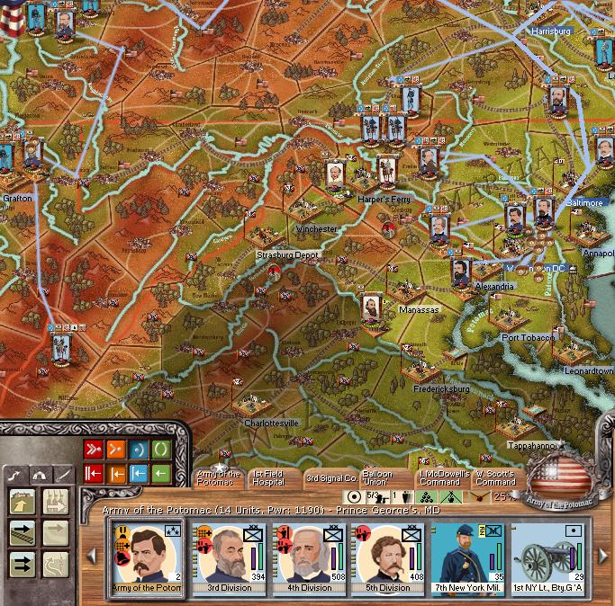 Washington is now isolated as the rail lines have been cut by southern sympathizers in Baltimore. To top this off, McDowell's NVA hasn't shown up yet!