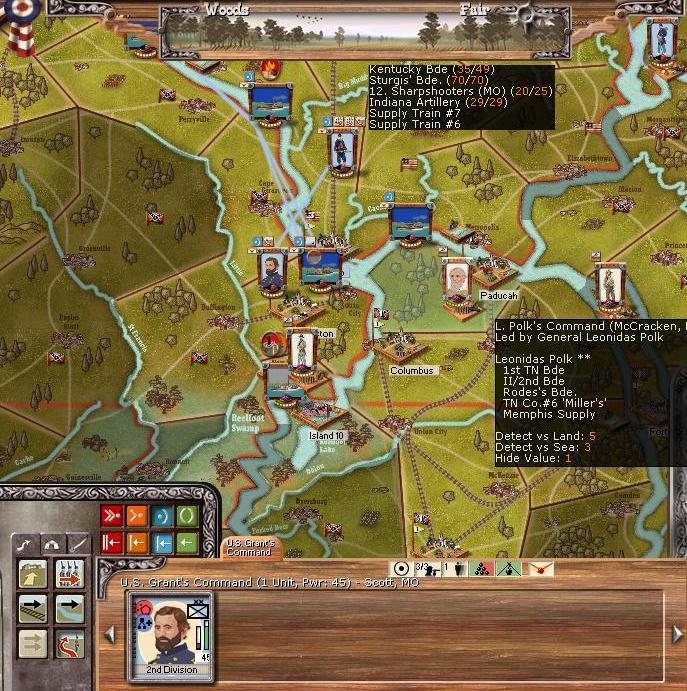 Ahh U.S. Grant! He`s formed a division and is ordered to Scott, Missouri. I`m counting only one rebel bde inside the city. Polk however, is just across the river at Paducah with more substantial forces. I beleive it`s unlikely many more forces will cross the river into Missouri at this stage so all-out attack for Grant and his boys.