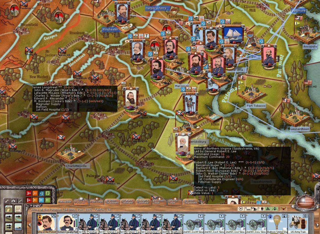 The army never made it to Fredericksburg, however, they should reach there during this resolution. Works out fine as it will support the attack on Richmond.