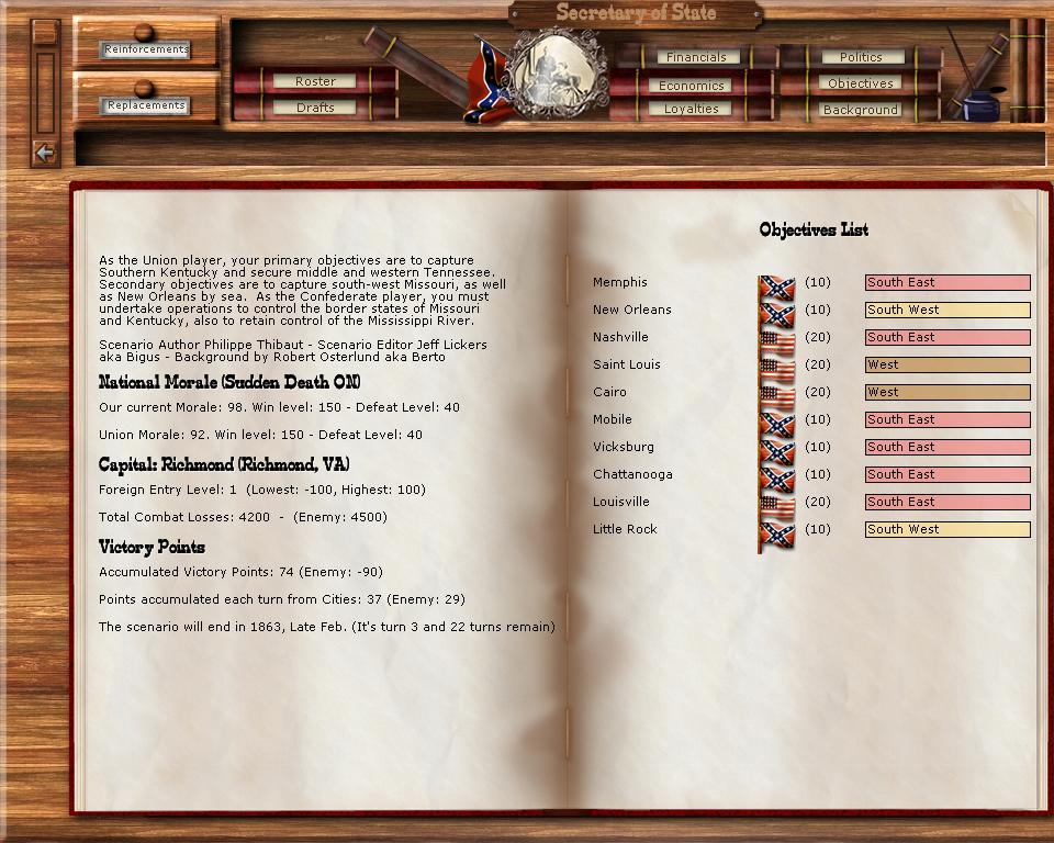 It appears I skipped a turn (oops). Well, here we are after turn 4. There was a nasty little battle that cost about 20,000 in casualties (combined), and resulted in a 9 point NM gain. All I can say is WOW, what a battle. Redeemer now has a lead of 397 points. (The results after turn 3 were Redeemer 191 vs. PascalB -89, for a lead of 280 points for Redeemer)
