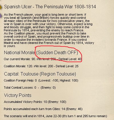 Yes, I'm aware that you can continue to play after victory, but no victory message. Continue a few turns doesn't help either. The manual states that it should be possible to achieve victory by morale. Isn't this really the case? Quite strange if that's true.