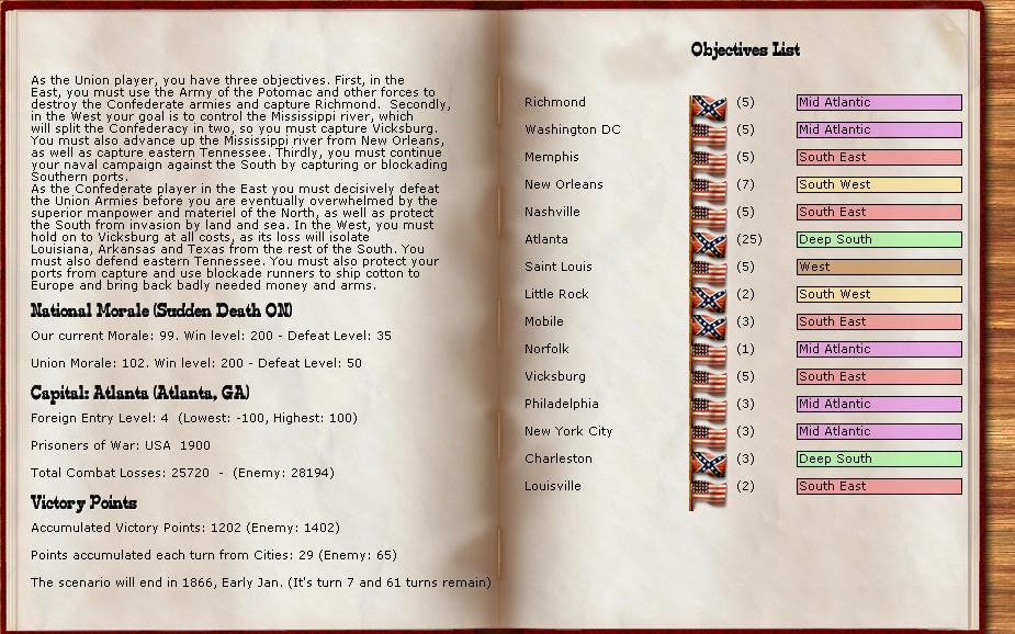 With the CSA side, my first objective will be save my armies. I will try hold my objective cities and my capital all the time that I can, but the most important concept is save the armies. Without armies, the objective cities will be conquered easily.