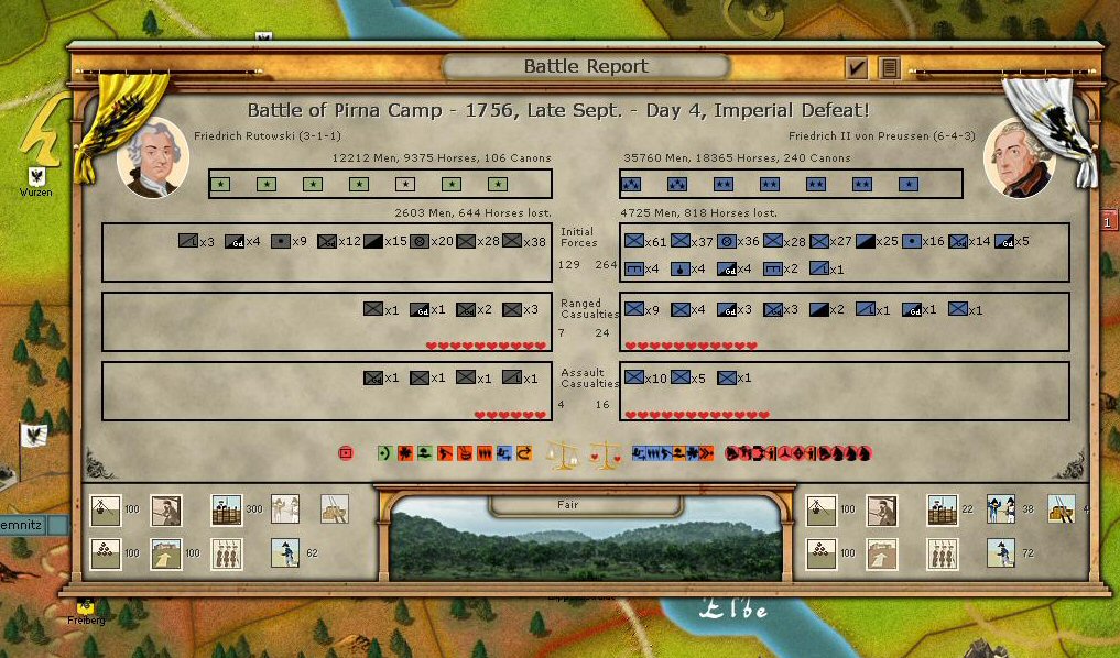 This was a battle on day 4 in a sequence of battles that the AI launched at Pirna camp. The battles occurred on days 2, 4, 5, 6, and 7.