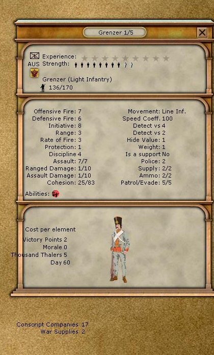 I agree - most of the inf battalions "purchasable" in the game cost 50-110 conscript coys. e.g. Austrian German bns cost 68. At 10:1, this puts the manpower of the typical bn between 500-1100, with 600-800 as a typical range. And in fact, 600-800 "other ranks" was a fairly standard size inf bn at the time.