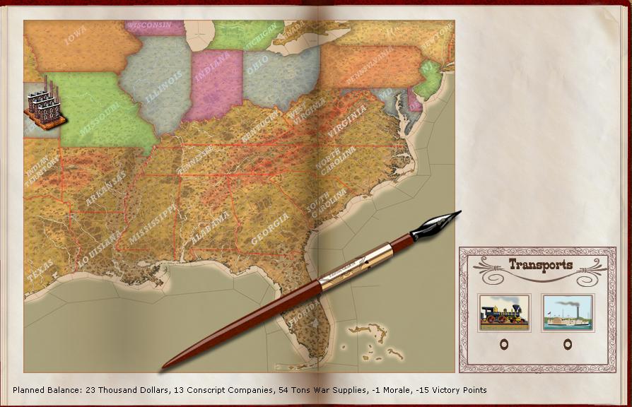 With this in mind I will look to create some mobile division commands to serve two purposes - push the ranks of the leading generals as well as tie up CSA troops fending off the advances of these forces. If I can keep Fusileer keeping one eye looking over his shoulder, I'll at least stand a chance of bringing the material and resource superiority to bear later in the game.