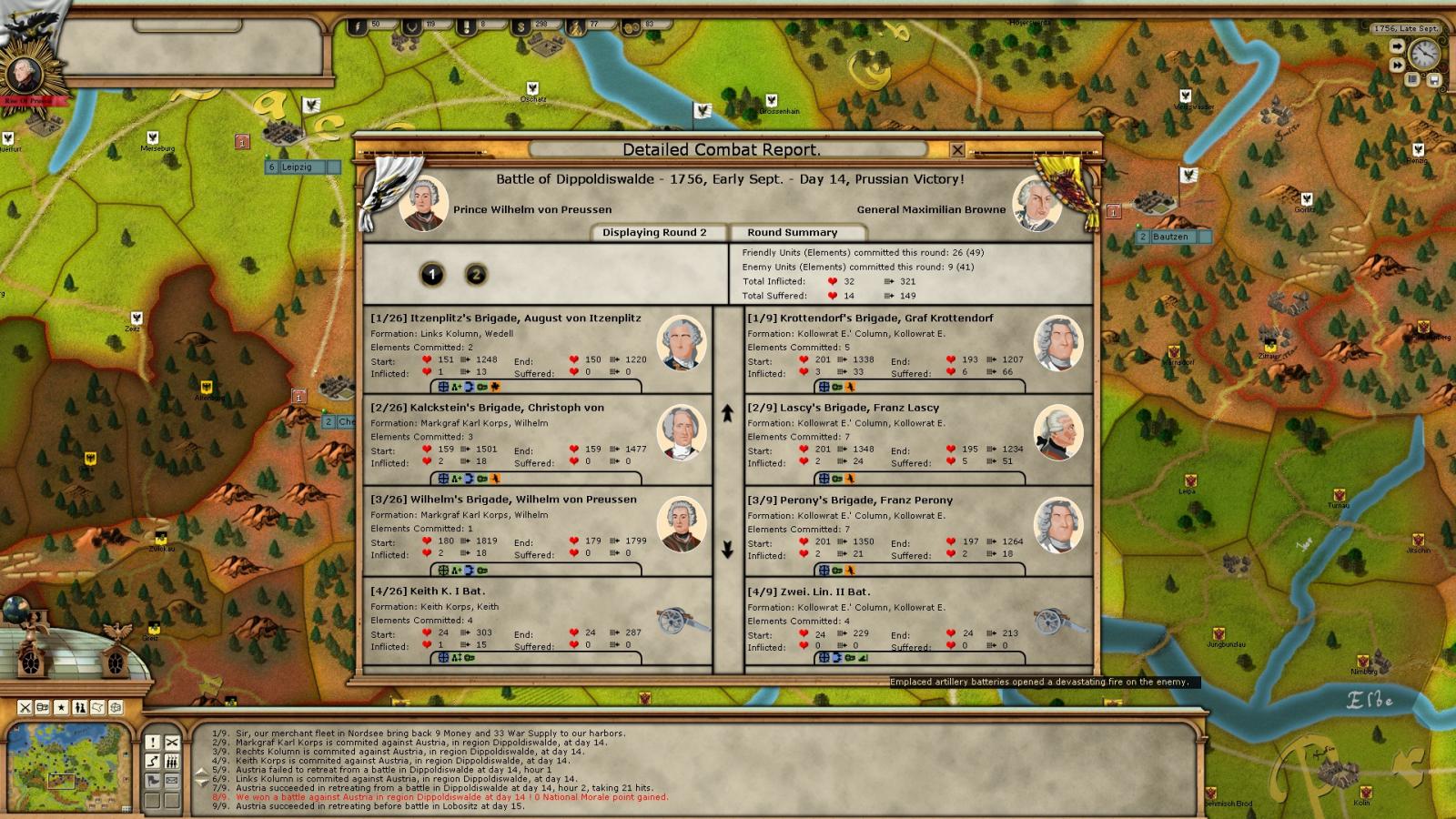 What I wonder is when the game creates detailed combat report, does the conclusion about success or failure(comments about performing of units like commanded successfully or high hit rate ) independent from damage achieved or taken. Or is it decided by high roll of dice about maximum they can roll (attack,defence) independent from damage against the enemy; or hits taken.?