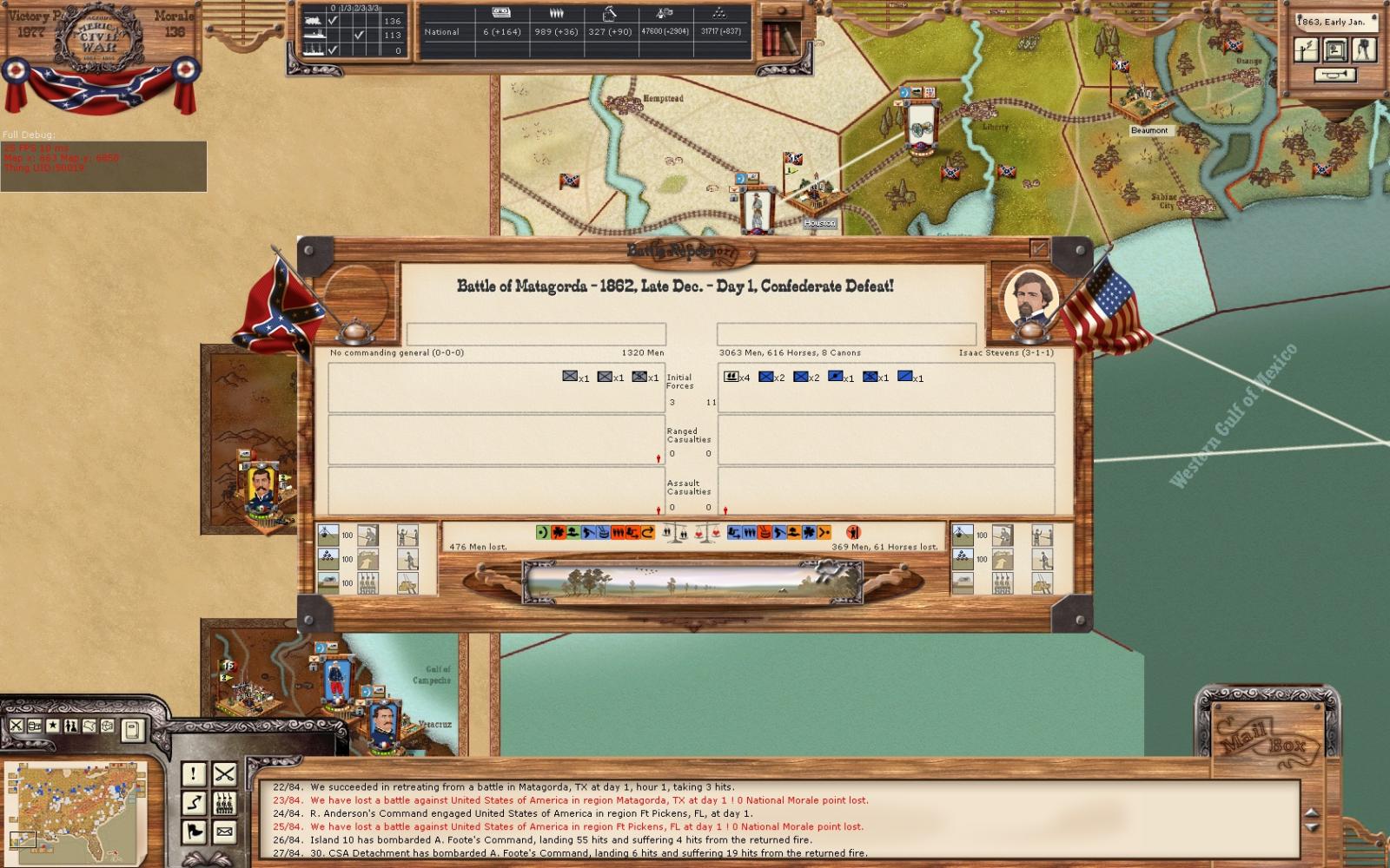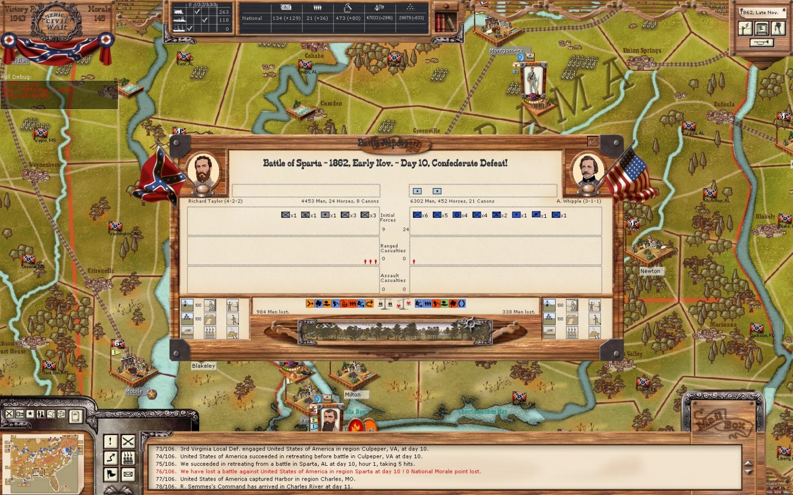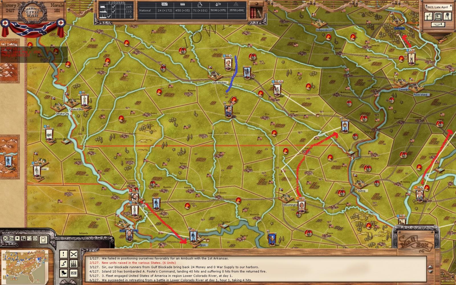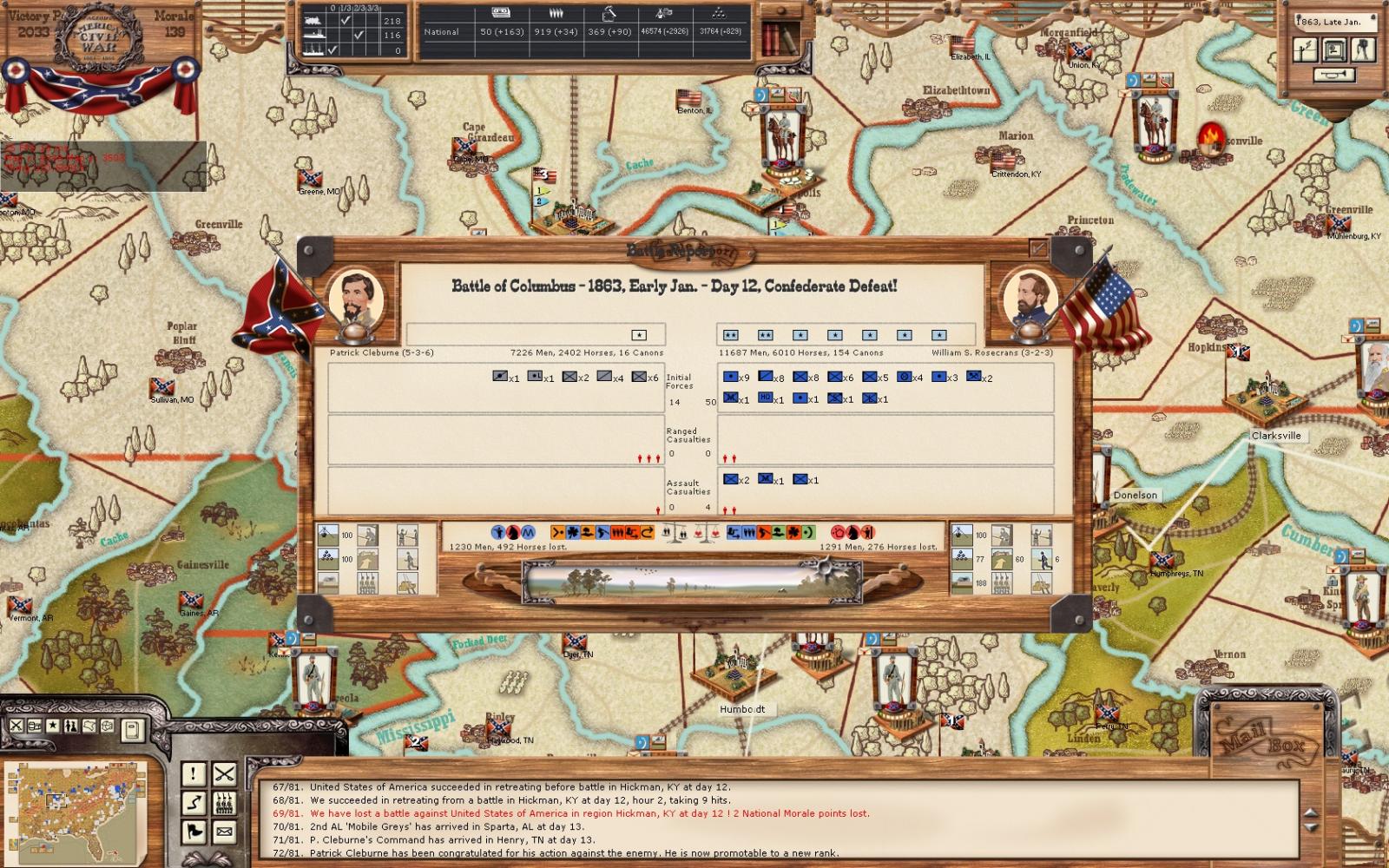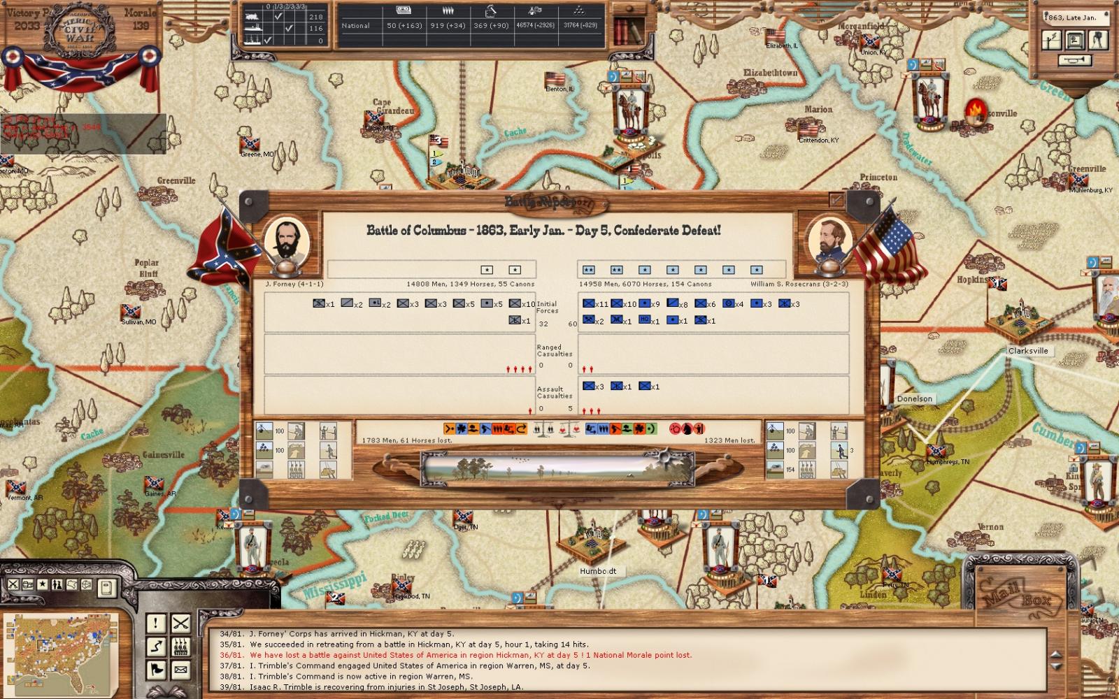 veji1 wrote:wow. I just read the reports at the bottom of the screenshots and it looks like you have made 38 000 prisonners in western Kentucky in this campaign, with 36 000 of those in Paducah. This is a major disaster for your opponent, you just basically did to him the equivalent of capturing Fort Donelson and Vicksburg at the same time !!