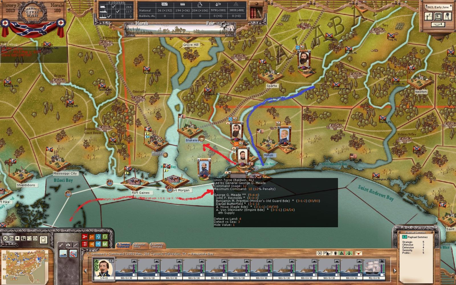 Meade, seems to be in Blakely, but his force is very small. I'll send Hood's division to deal with him. The rest of my forces will stay put.