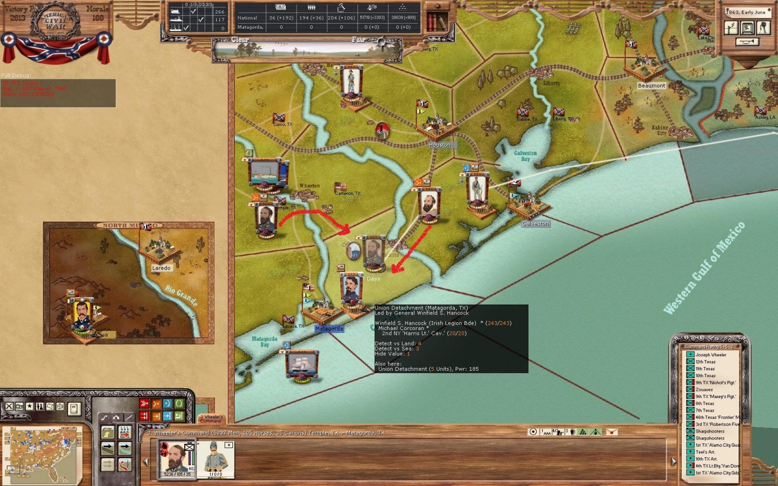 More attacks on Matagorda by Smith and Wheeler. I've got the port blockaded so only a matter of time before the enemy is routed here.