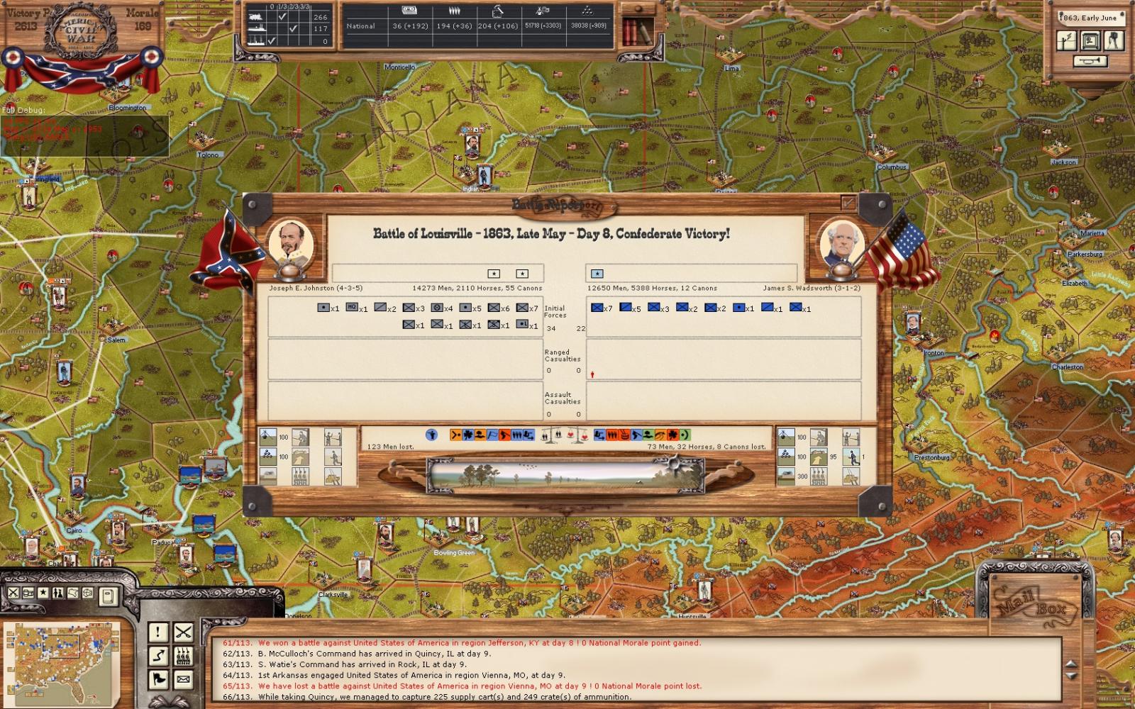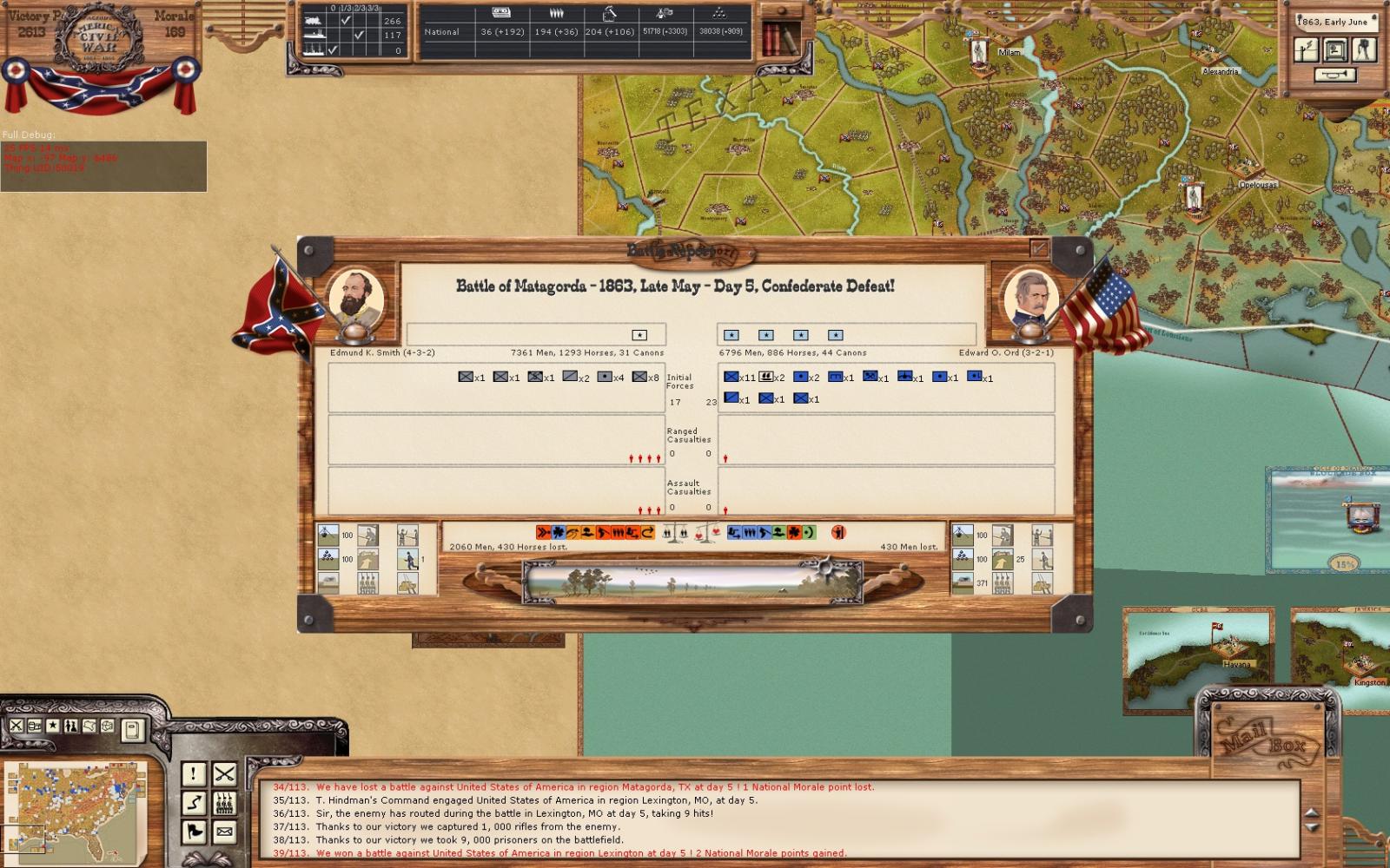 CSA defeat; my generals are still not able to dislodge the enemy from Texas.