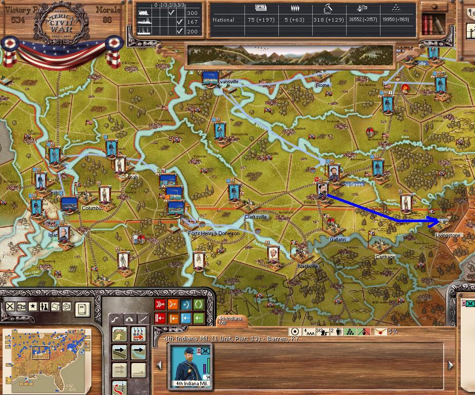 Union Armies/HQs are located at: Army of Tennessee (Louisville), HQ at Washington (not army yet)