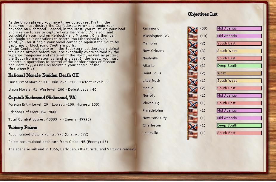 Orders - Bory and command are moving to Richmond. Reinforcements to Richmond and Memphis. The CSA inflation is 20%.